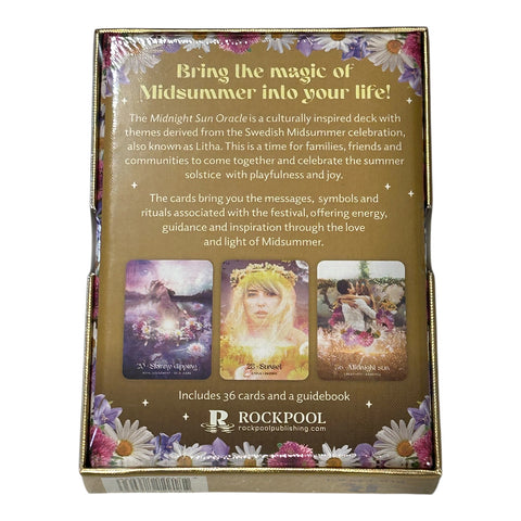 The Midnight Sun Oracle is a cultured inspired deck with themes derived from the Swedish Midsummer Celebration, also known as Litha. This is a time for families, friends and communities to come together and celebrate the summer Solstice with playfulness and joy.