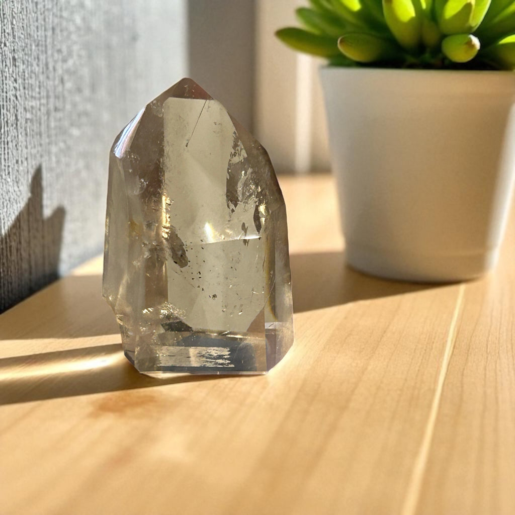 Smokey Quartz is a grounding and anchoring stone, raises vibration during meditation, relieves stress, lifts depression, helps manifest your dreams, dissolves negative emotions, promotes concentration, helps provide pain relief. Removes negativity. Helps with electromagnetic smog. (EMF'S)