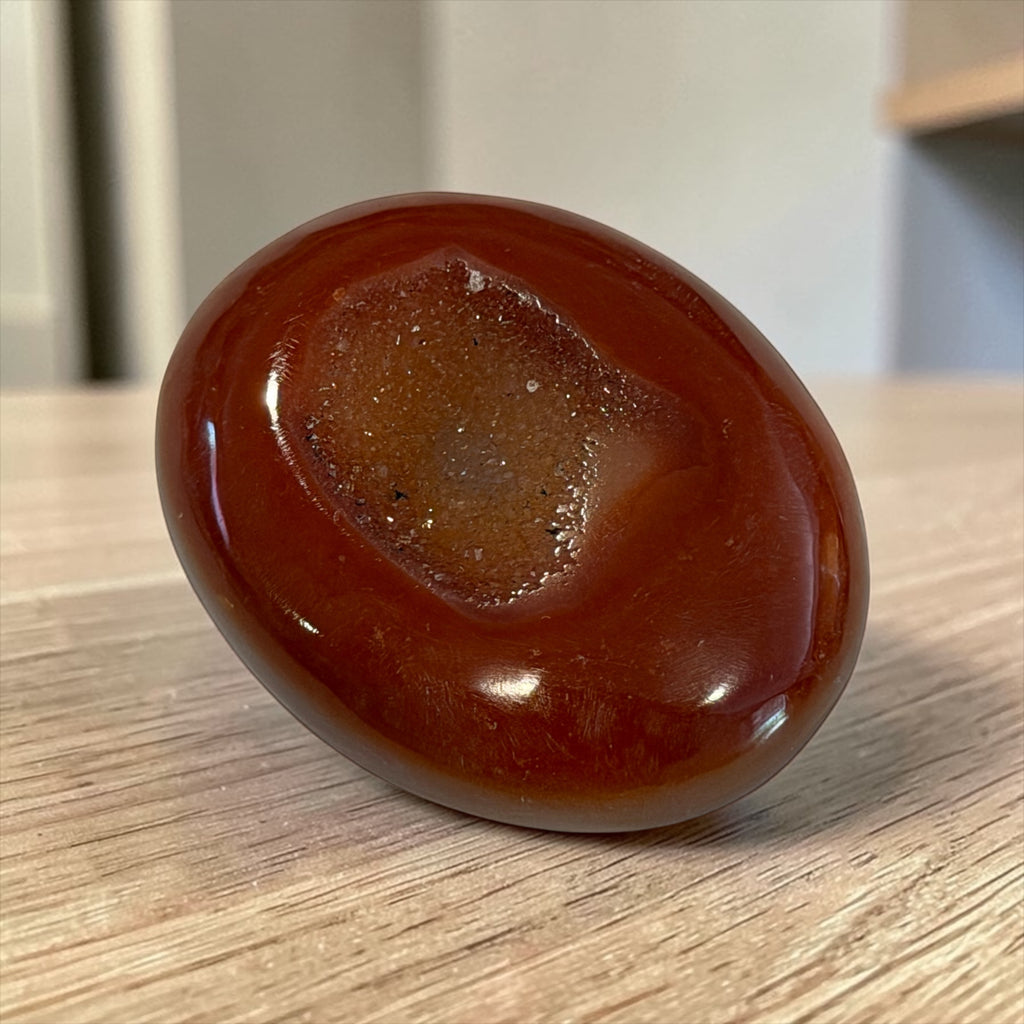 Carnelian grounds and anchors you into reality, stimulates the metabolism, clarifies perception improves concentration, gives courage, promotes positivity, motivates success and cleanses other stones.